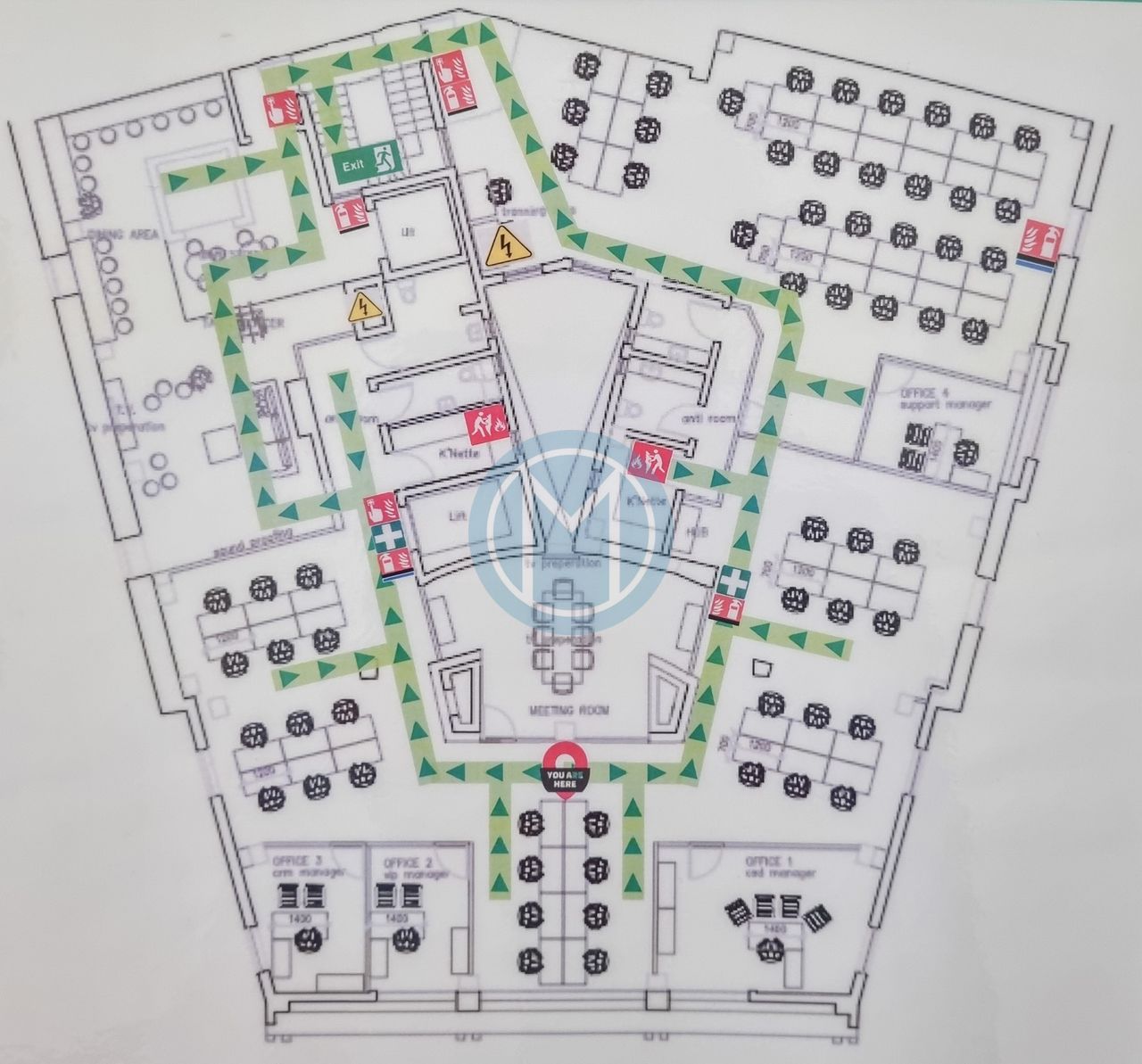The office measures 1,000 SQM and is spread across two floors, allowing for structured team organisation.