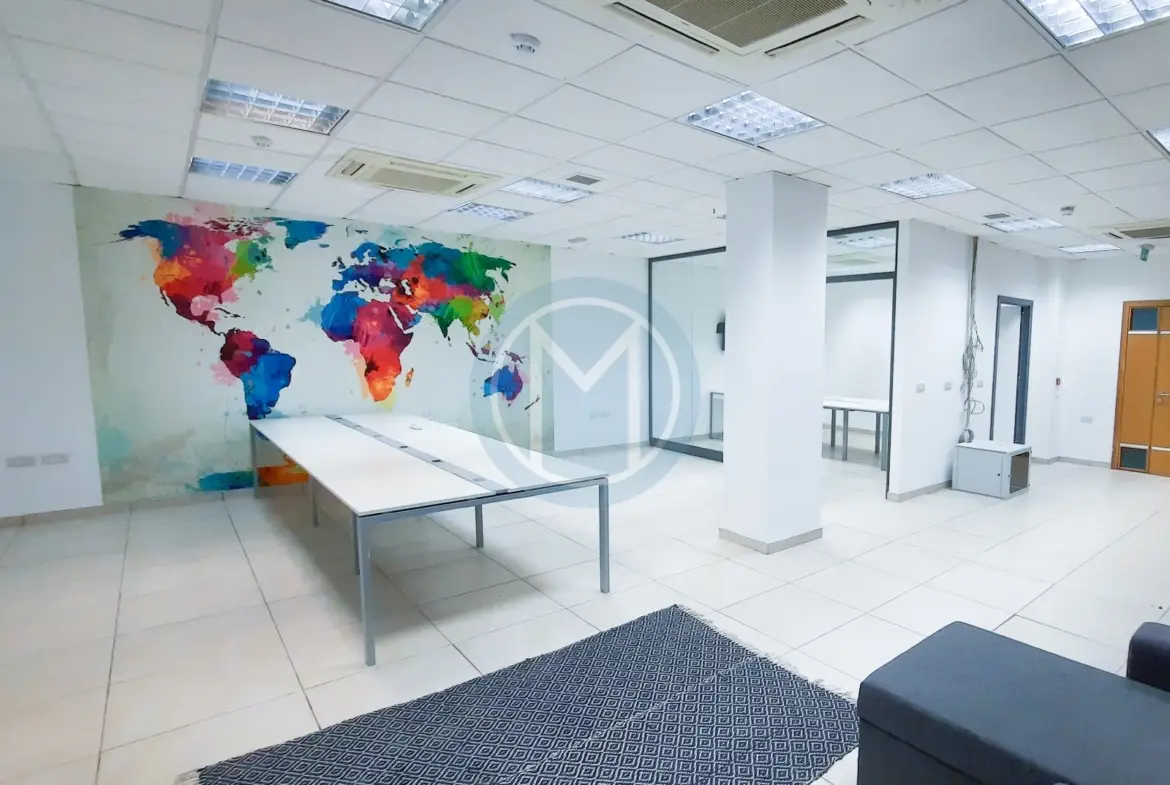 Office in Sliema For Rent exceptionally located in the heart of Malta’s bustling retail centre, this 90 SQM office space is a perfect fit for small to mid-sized teams of 6 to 12 members. For startups looking for a prime address, or for businesses contemplating a more efficient use of space, this may serve as an ideal step down from a larger, underutilised office. The space offers a blend of cutting-edge amenities and absolute convenience, enhancing both work quality and team morale.