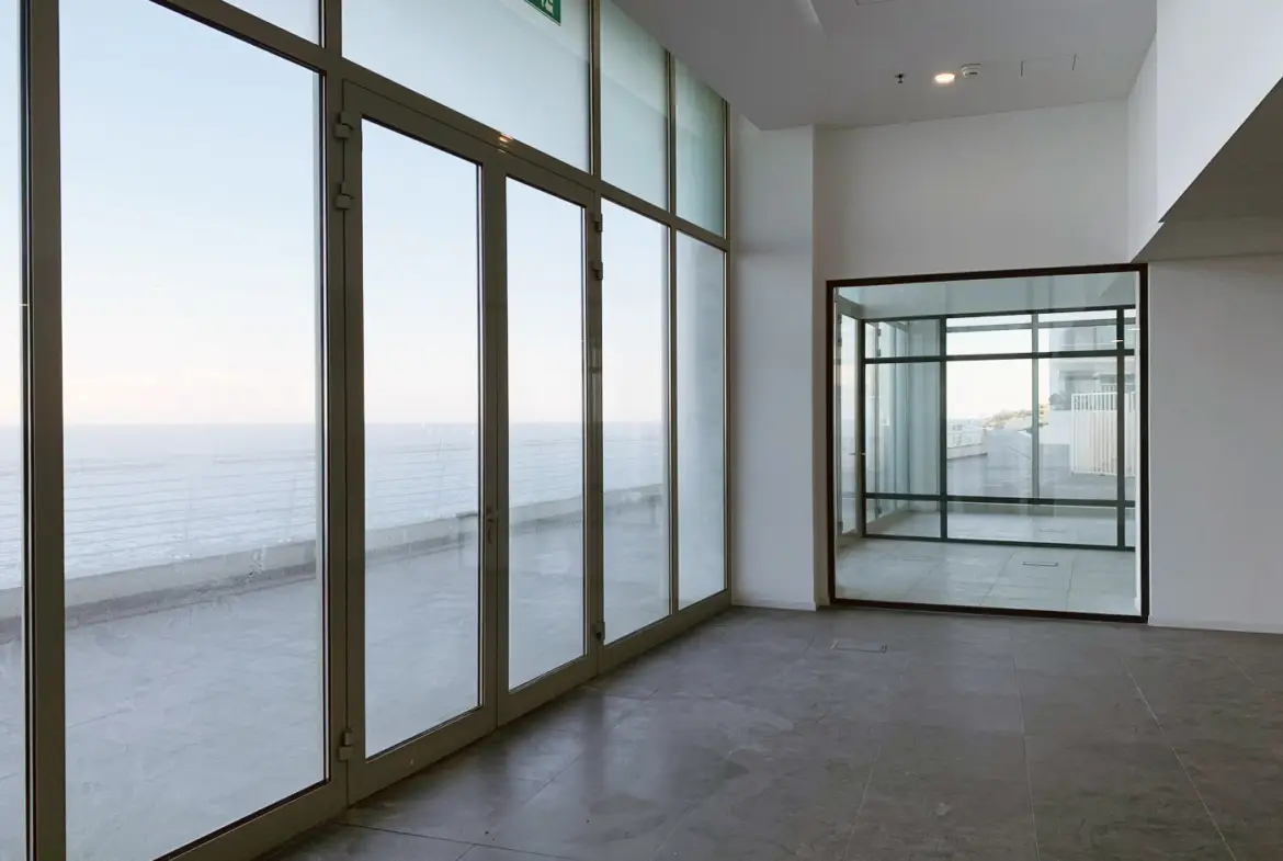 Seafront Office for Rent in Sliema (231m2) located on the ground floor of this desirable development. This commercial property enjoys it’s own entrance and is flooded with natural light that enters from it’s floor to ceiling glass apertures and envelope – exposing gorgeous unobstructed Mediterranean sea views.